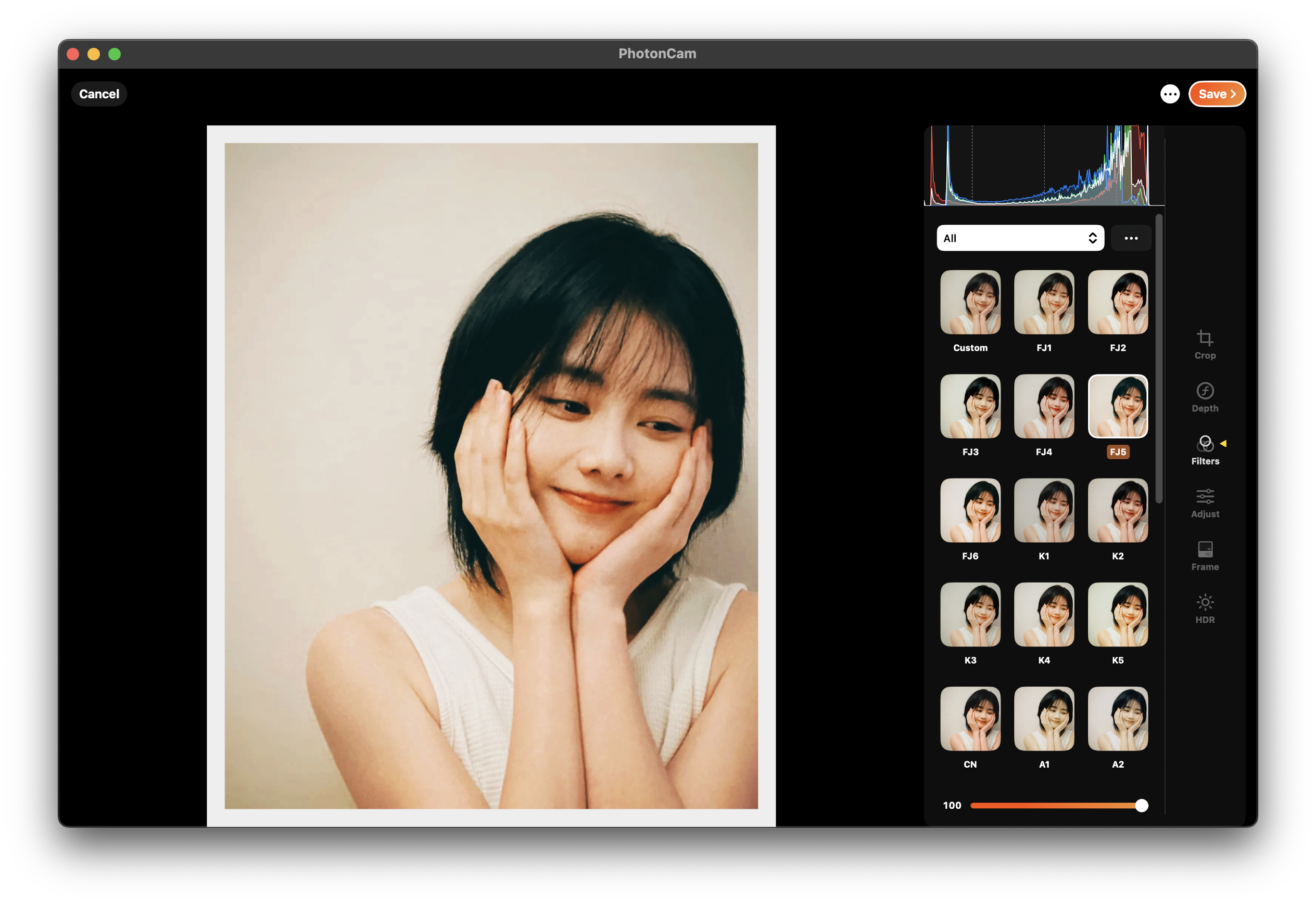 - 拍照特点:这是我第一次见到可以如此方便切换 JPEG/HEIF 格式的照相软件,左上角的直方图非常方便。对焦、白平衡和曝光均匀分布,美观、方便、快捷。