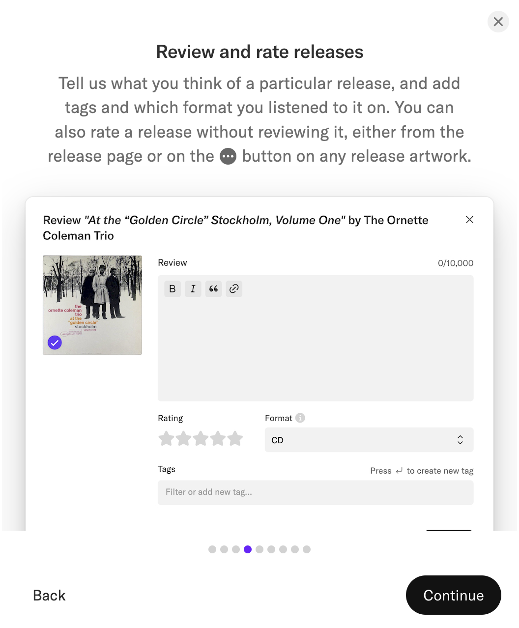 Record Club 的界面如同一片未经污染的净土,简洁、清爽,没有任何多余的干扰。在这里,我可以心无旁骛地穿梭于各式专辑之间,品尝那些如美味佳肴般丰富的音乐,仿佛回到了音乐最初的美好时光,重新感受到生活的诗意与宁静。偶尔,当某段旋律惊艳了我的耳朵,甚至让我起了一身鸡皮疙瘩时,我可以毫不犹豫地将它推荐给好友。而在评论区,我可以自由地分享自己对音乐的感悟、评论或者打上标签,轻松整理属于自己的音乐世界。