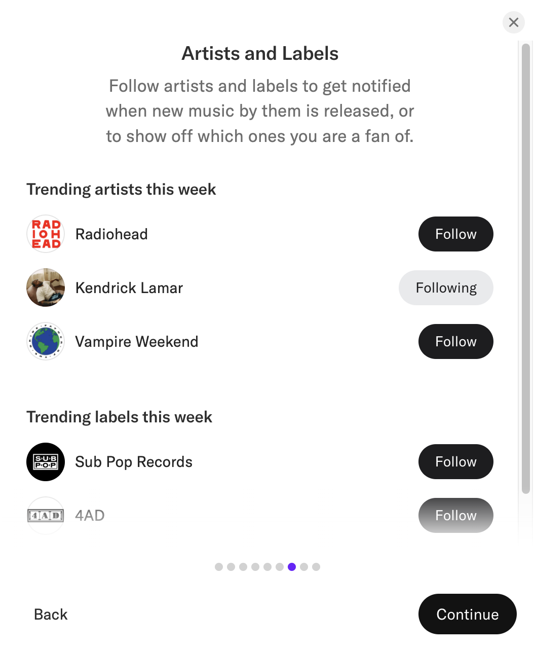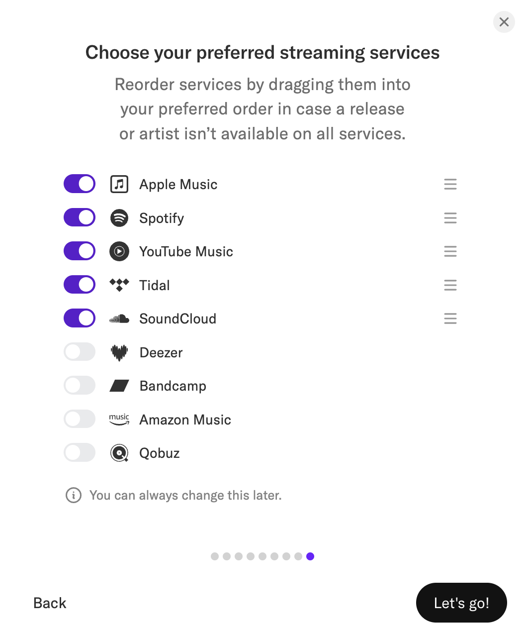 不仅如此,用户还可以搜索自己钟爱的歌手或厂牌,并在Activity中追踪音乐的最新动态(图7)。在引导界面(图8)或设置界面中,用户可以根据个人偏好调整平台的顺序,方便快捷地跳转到试听页面。无论是Apple Music的忠实用户,还是Spotify的爱好者,都能在这里找到属于自己的音乐天地。Record Club 不仅是一个听歌的工具,更是一个让音乐回归纯粹、连接人与人之间情感共鸣的空间。