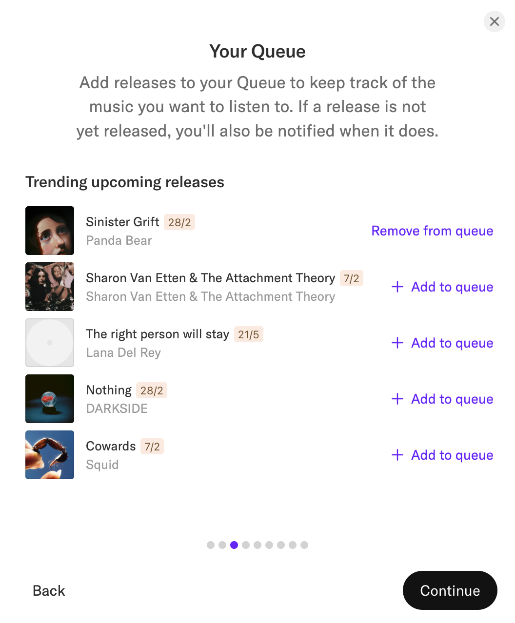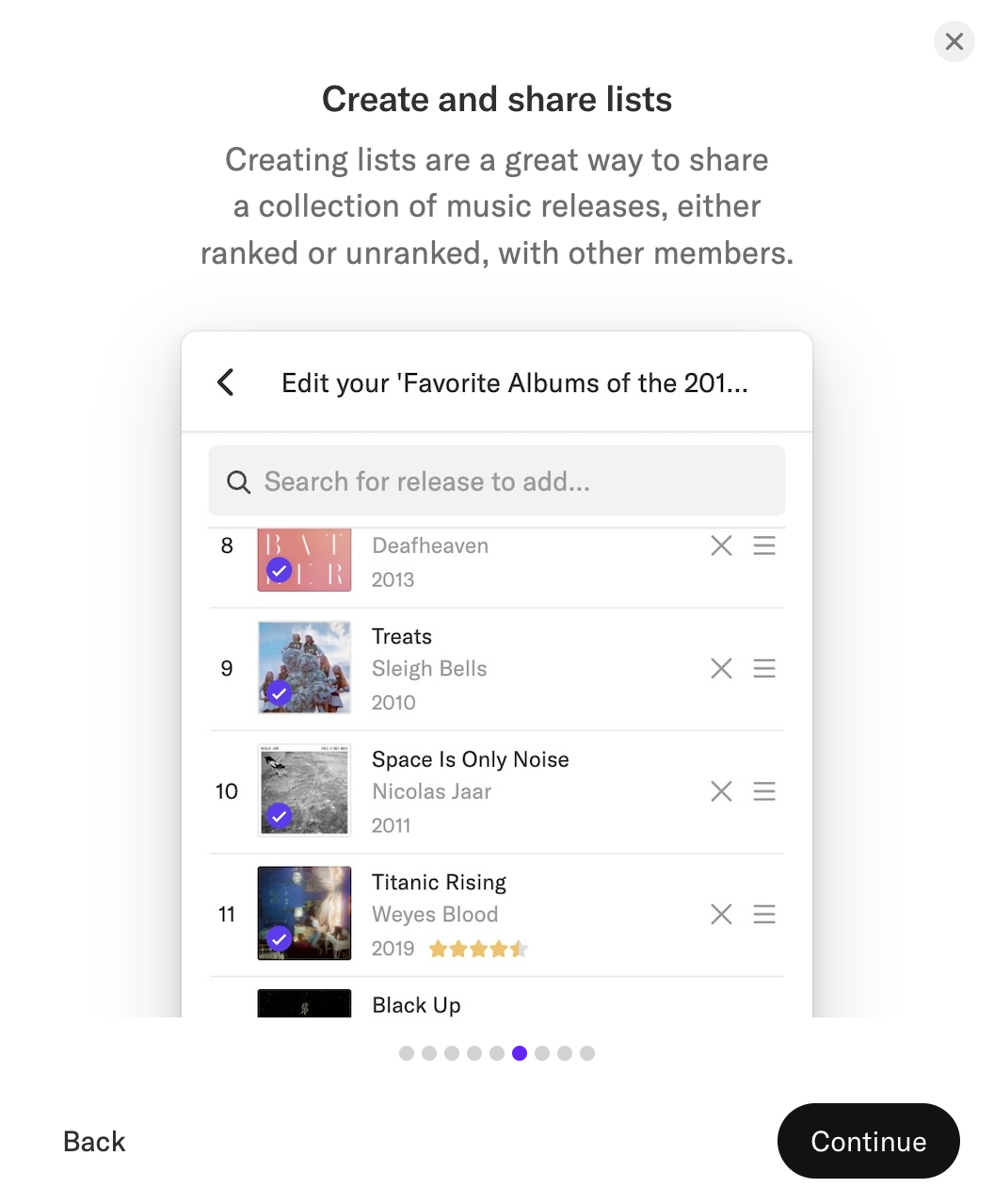在 Record Club 的个人界面中,用户不仅可以展示自己正在循环播放的歌曲(图2),还能将心仪的音乐加入队列(Queue)(图3),静待它们在未来某个时刻悄然响起。此外,用户可以自由地撰写对某首歌曲或某张专辑的评论与感悟(图4),将内心的共鸣化为文字。如果与志同道合的朋友一同使用,遇到令人心动的旋律时,可以轻松地将它们推荐给好友,并在通知中接收或拒绝这些推荐(图5)。就像在其他音乐平台上一样,用户可以根据自己的喜好创建歌单(List)并为它们打上标签(图6),打造属于自己的音乐世界。