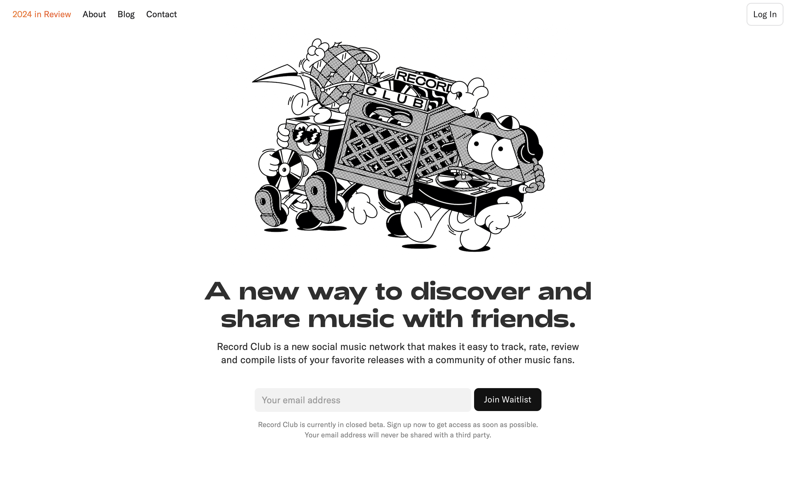 2024 年年初的冬天,我喝着咖啡,听着黑胶,在电脑面前肆意浏览着,意外发现了这样一个有意思的音乐社区的网站,Record Club,加入了等候名单(waitlist)。
