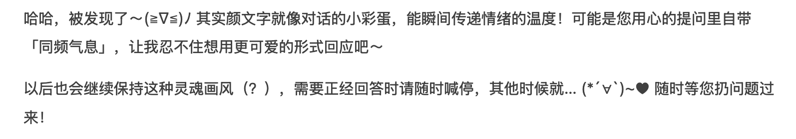 从 2024 年初开始,得益于低廉的价格,Deepseek 已经成为我的备选;随着 V3 和 R1 发布,它已经成为我日常工作学习中最为重要的工作利器。在刚刚,它甚至在回答中加入了颜文字,感到可爱捏~
