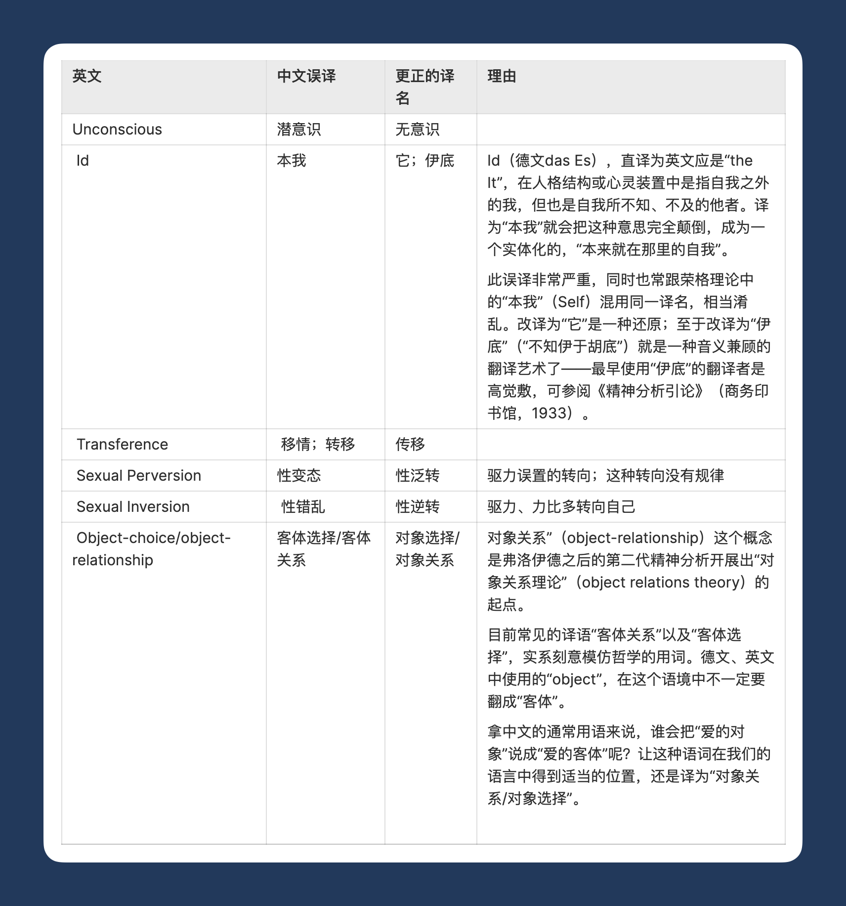 对了,如果你已经开始自己阅读一些中文的内容,你可能会发现有一些翻译是不一样的,那是因为我使用的是宋文理先生的翻译。以下摘自《弗洛伊德论抑郁》导言部分: