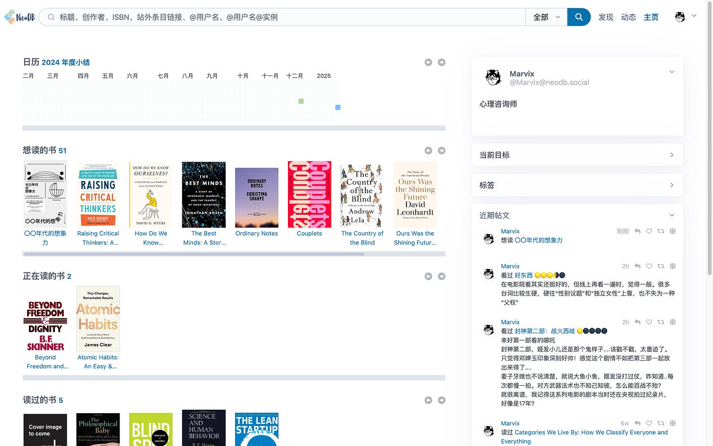 如果你也在寻找一个新的精神家园,不妨来 NeoDB 转转。在这里,你不只是在收藏文化作品,更是在书写属于自己的文化故事。