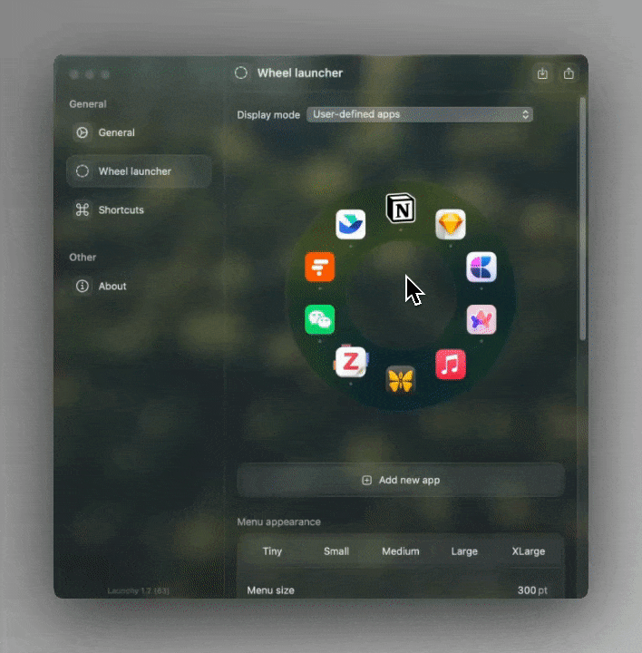 不仅可以设定圆盘上面的常用 App,也可以在设置中改为「正在运行」的 App: