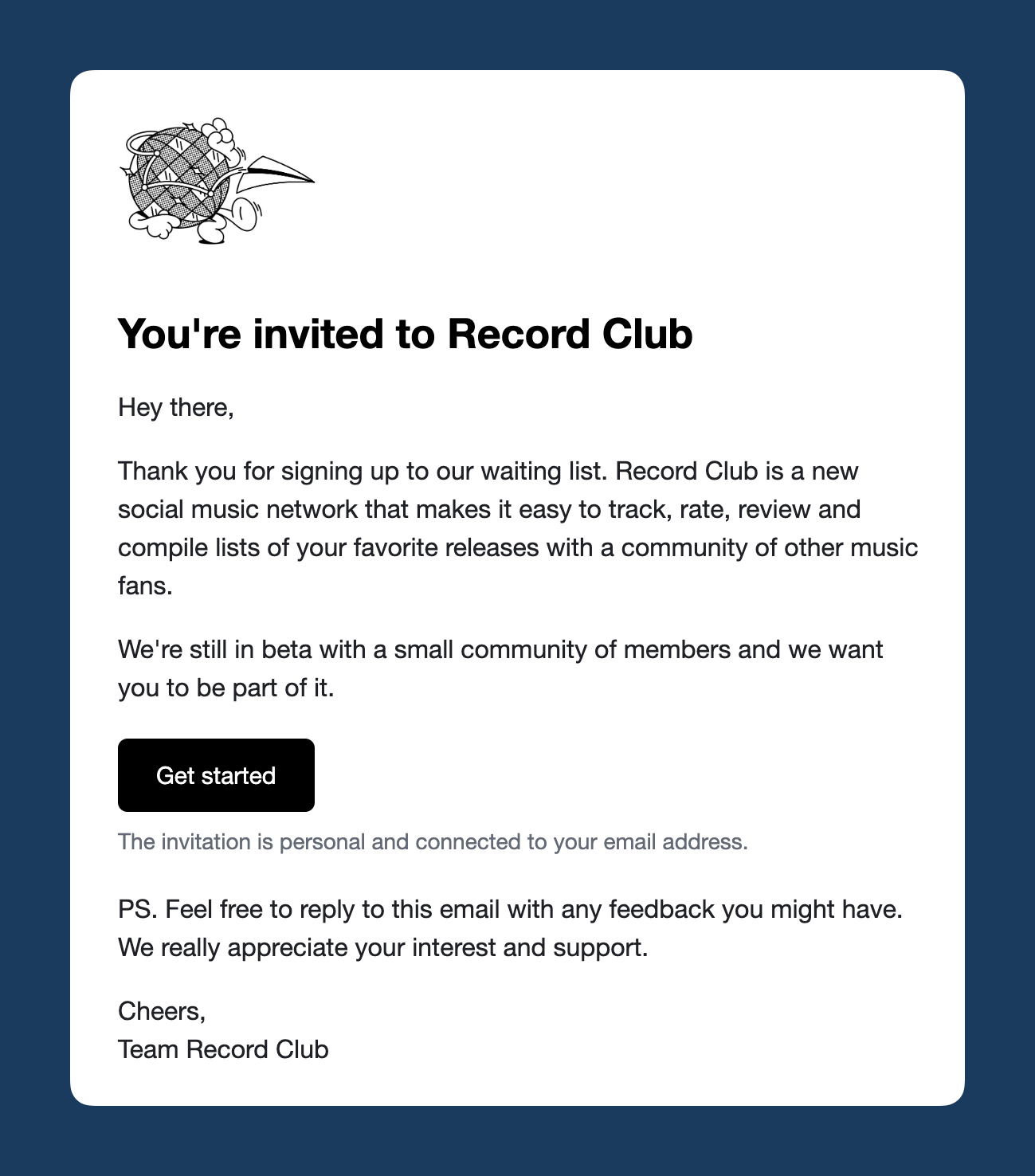 2024 年年初的冬天,我喝着咖啡,听着黑胶,在电脑面前肆意浏览着,意外发现了这样一个有意思的音乐社区的网站,Record Club,加入了等候名单(waitlist)。