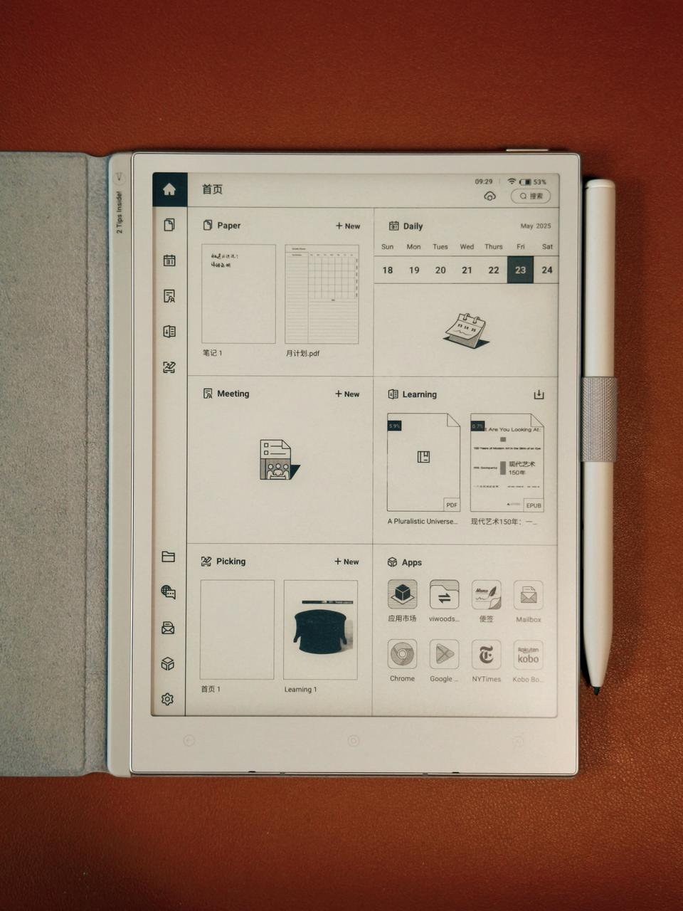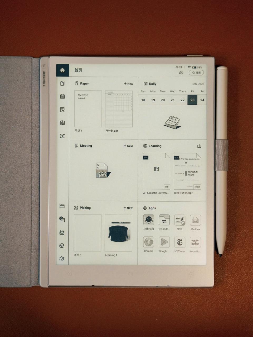 RM 有一个自家的云服务。用户可以在线浏览、编辑并同步文件。这一点非常好用。然而,这样的云同步不仅收费,而且无法在国内使用,真得只剩下一张「纸」了。回国后,RM 慢慢放在书架上吃灰了。Viwoods 没有自己的云端同步服务。对于一家正在成长的公司来说,这确实是一个从成本上的考量。
