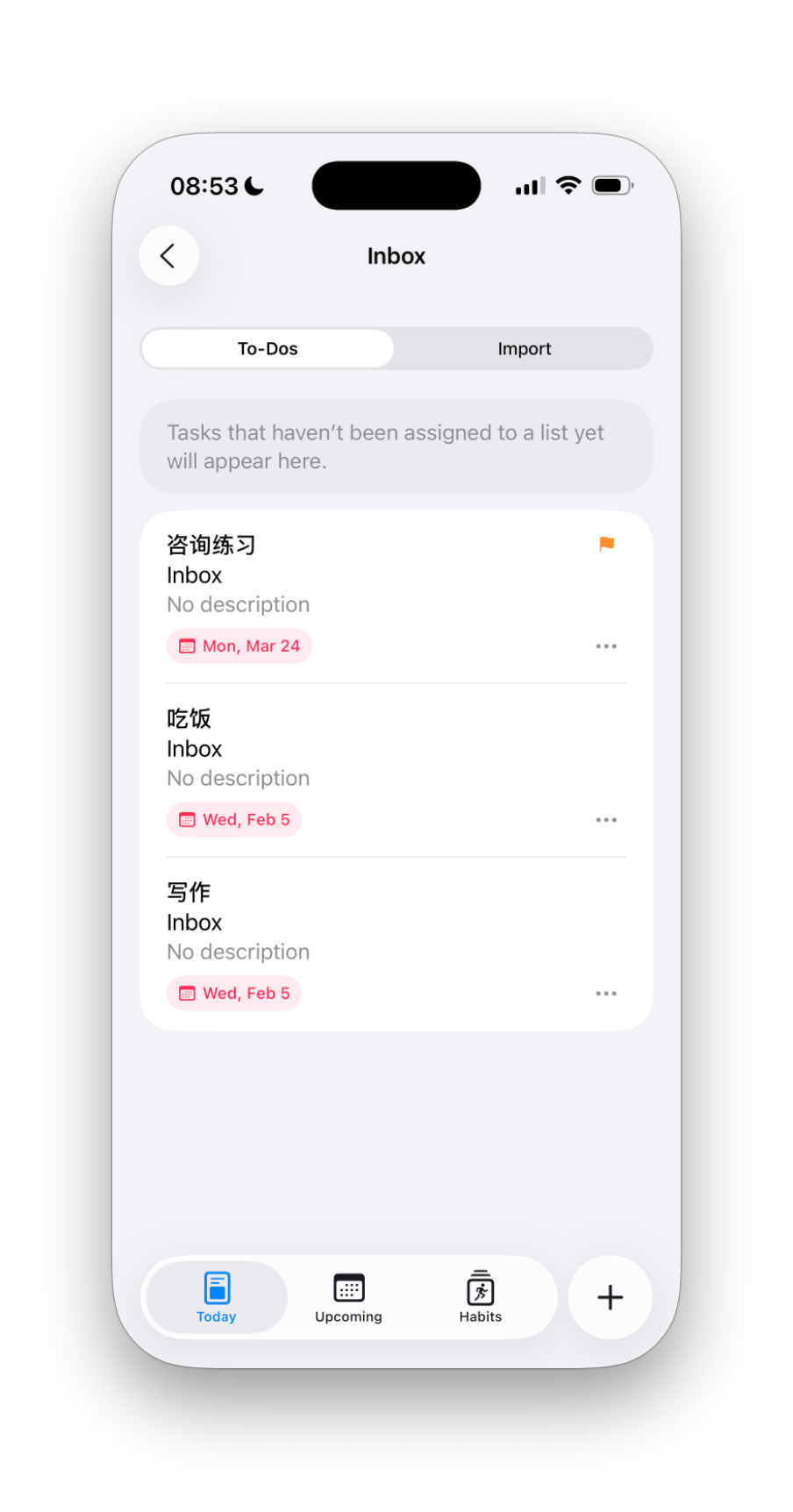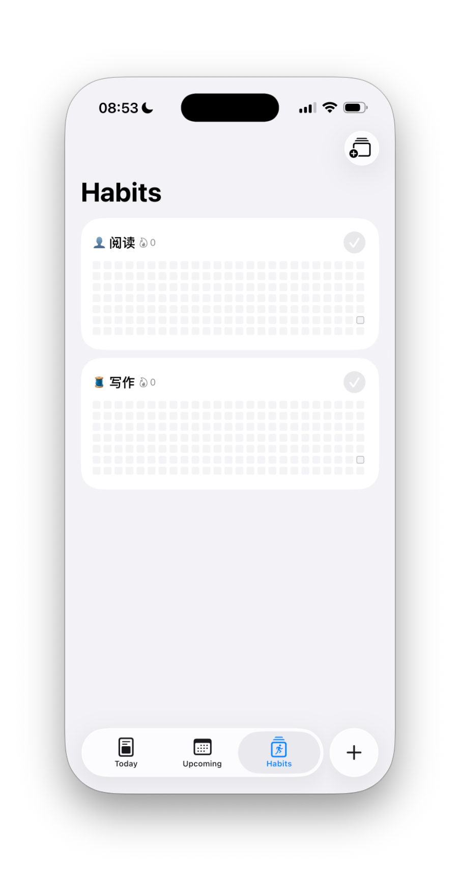 - Today:同步苹果日历和提醒事项,也可以记录、打卡自己的习惯